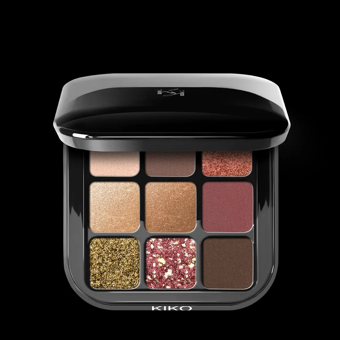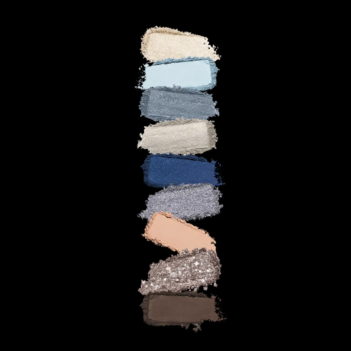 Palette de 9 ombres à paupières aux finis variés : mat, nacré, métallisé, marbré et scintillant.