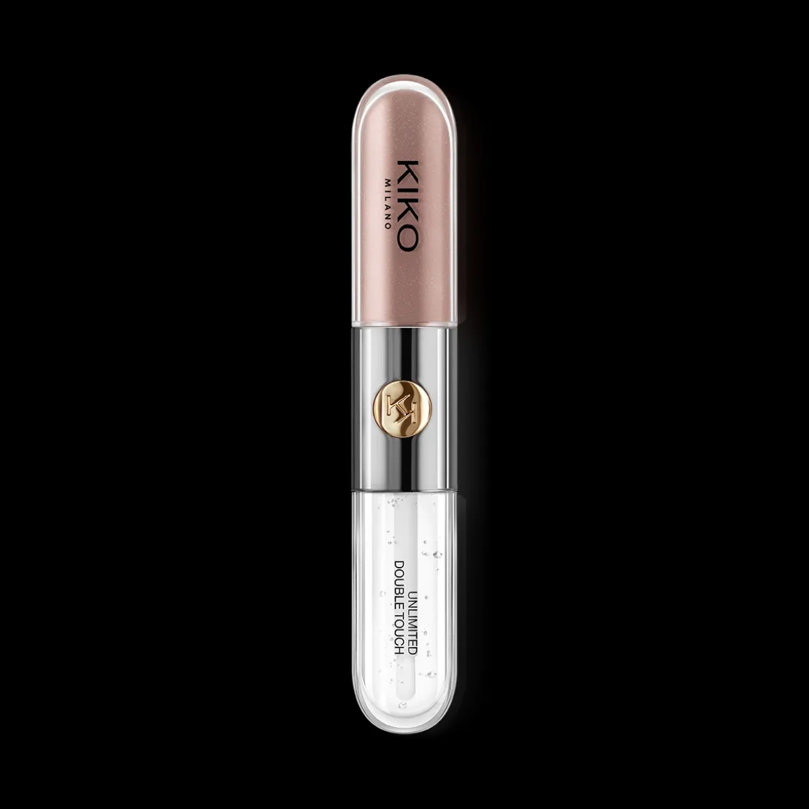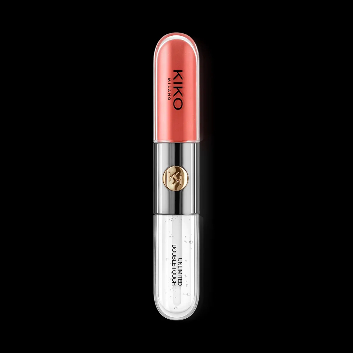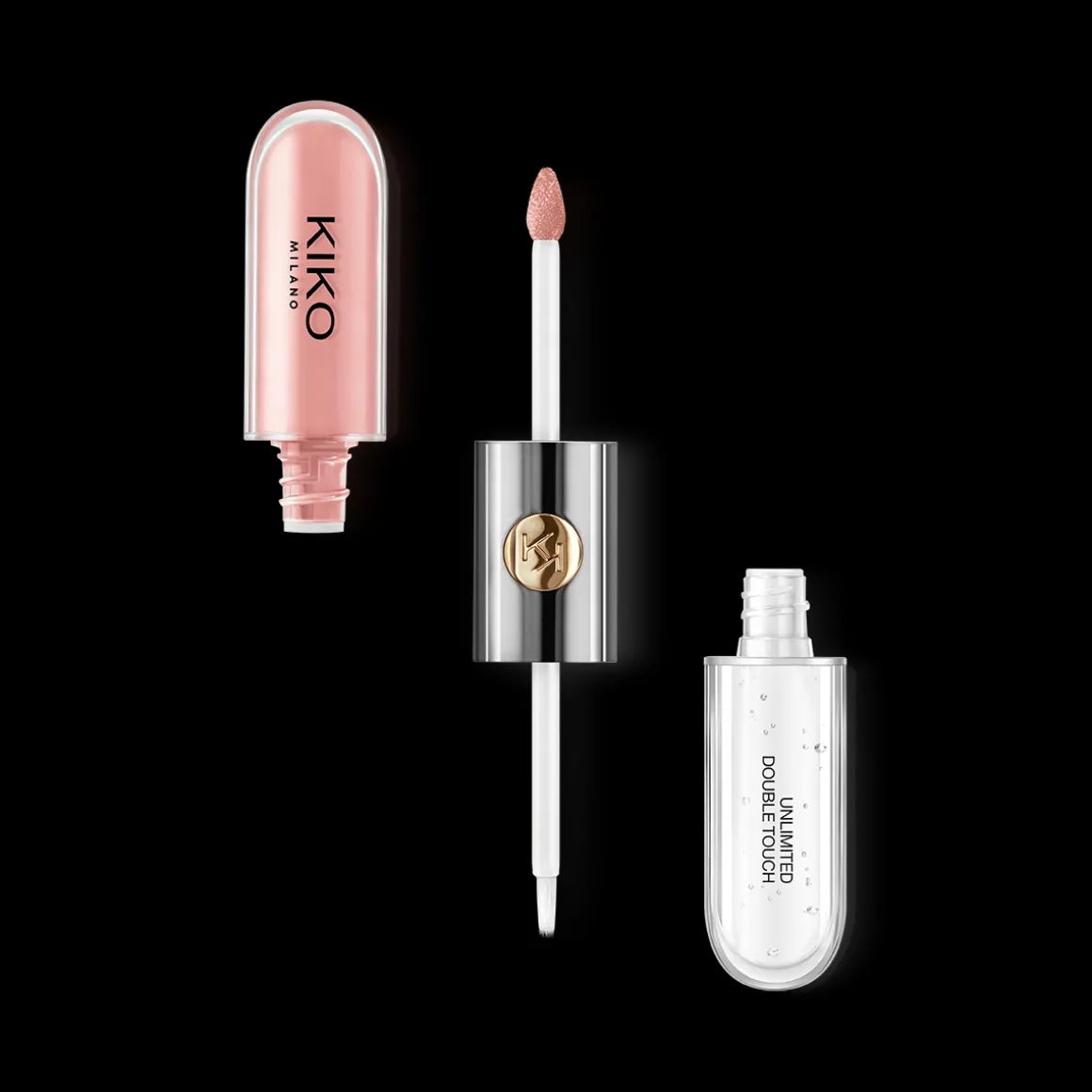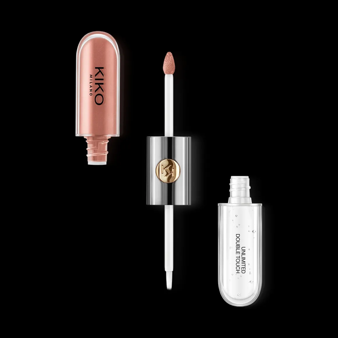 Le rouge à lèvres propose deux applicateurs adaptés à chaque texture : l’applicateur floqué de la base colorée garantit une précision optimale, tandis que celui du gloss est muni de poils, pour un dosage parfait. Son design fonctionnel et élégant se distingue grâce à sa partie centrale en métal ornée du monogramme KK.